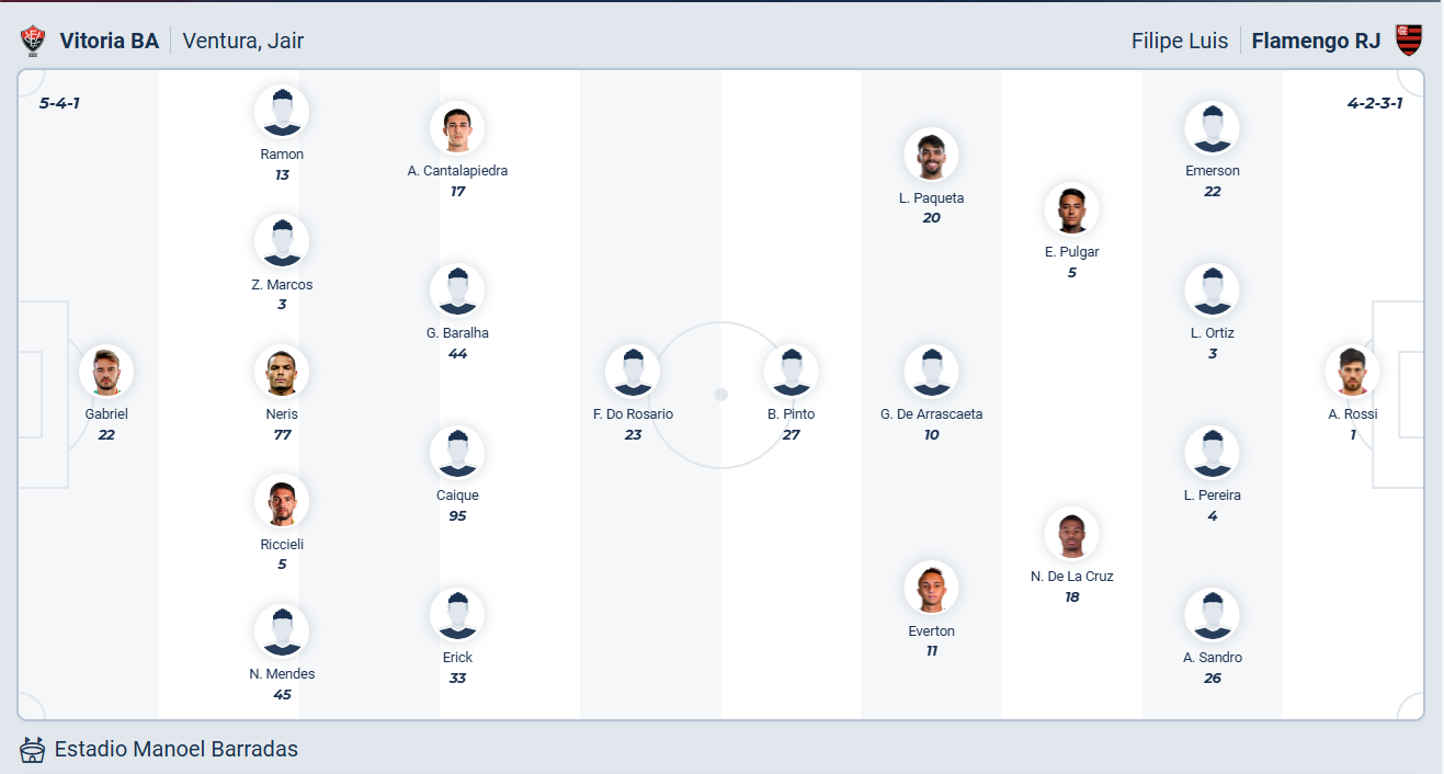 Vitoria sẽ tiếp Flamengo trên sân nhà trong trận đấu thuộc vòng 3 giải vô địch Brazil Serie A với mục tiêu giành chiến thắng để có vị trí tốt trên bảng xếp hạng. Nhưng trước đối thủ mạnh hơn thì xem ra mục tiêu này khó thành hiện thực.